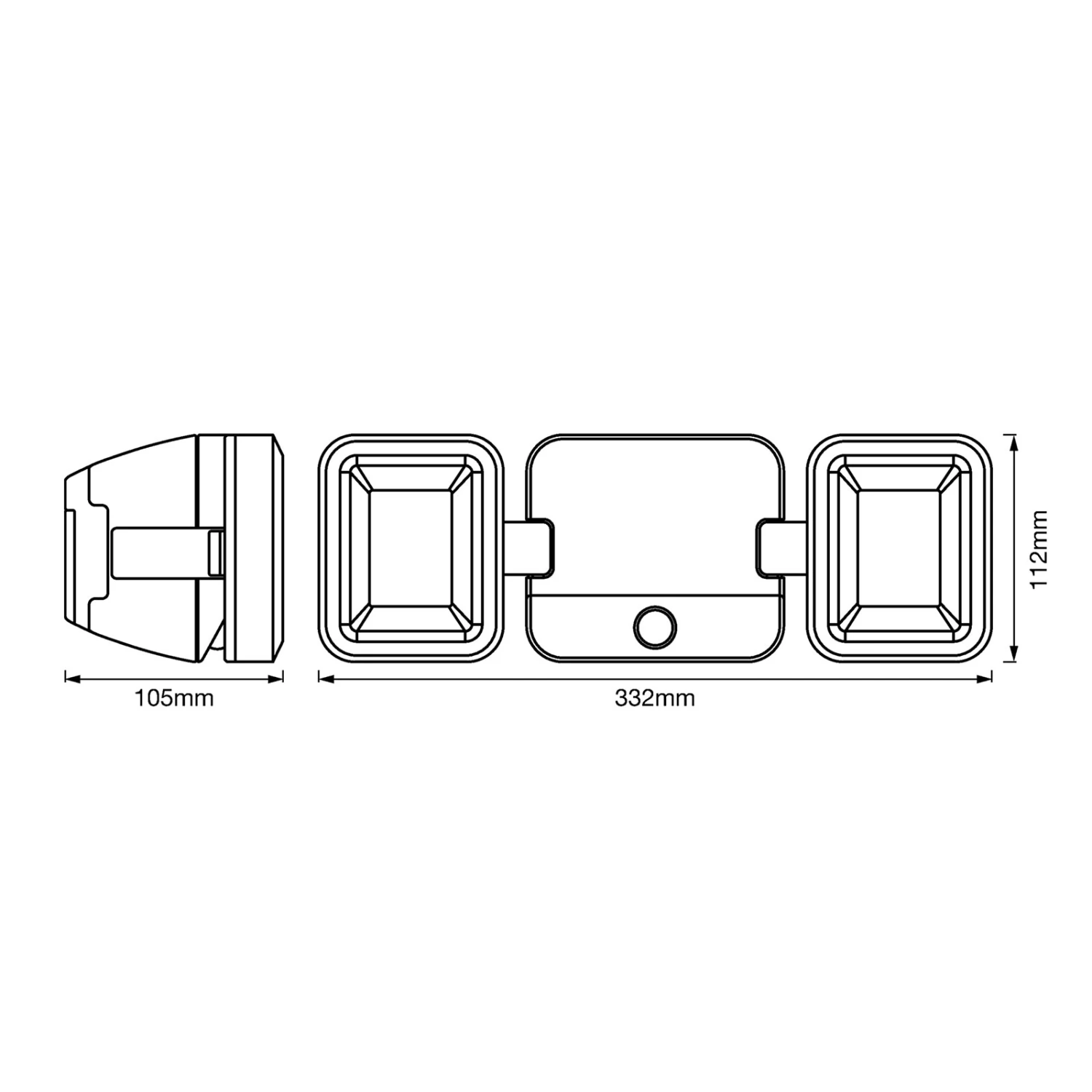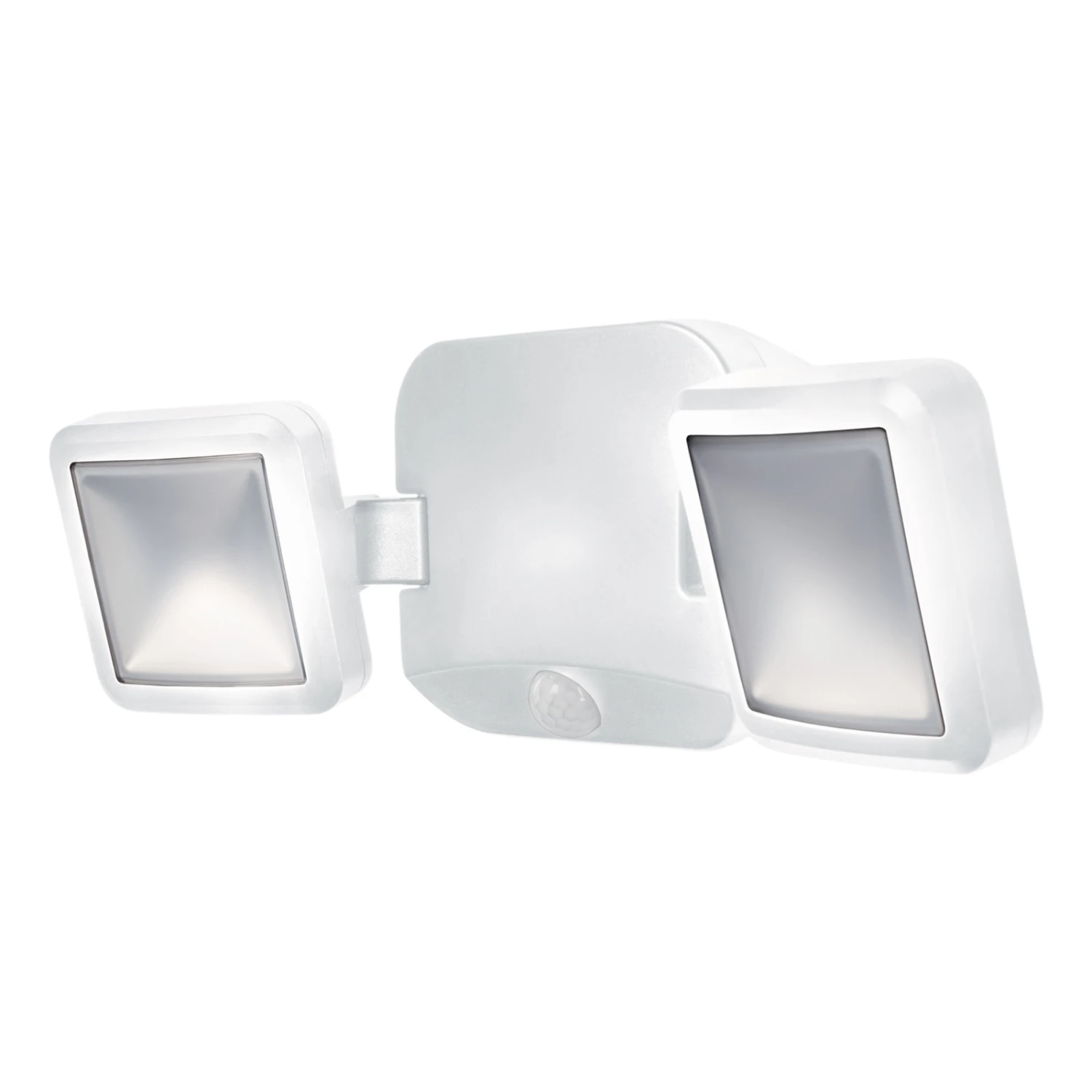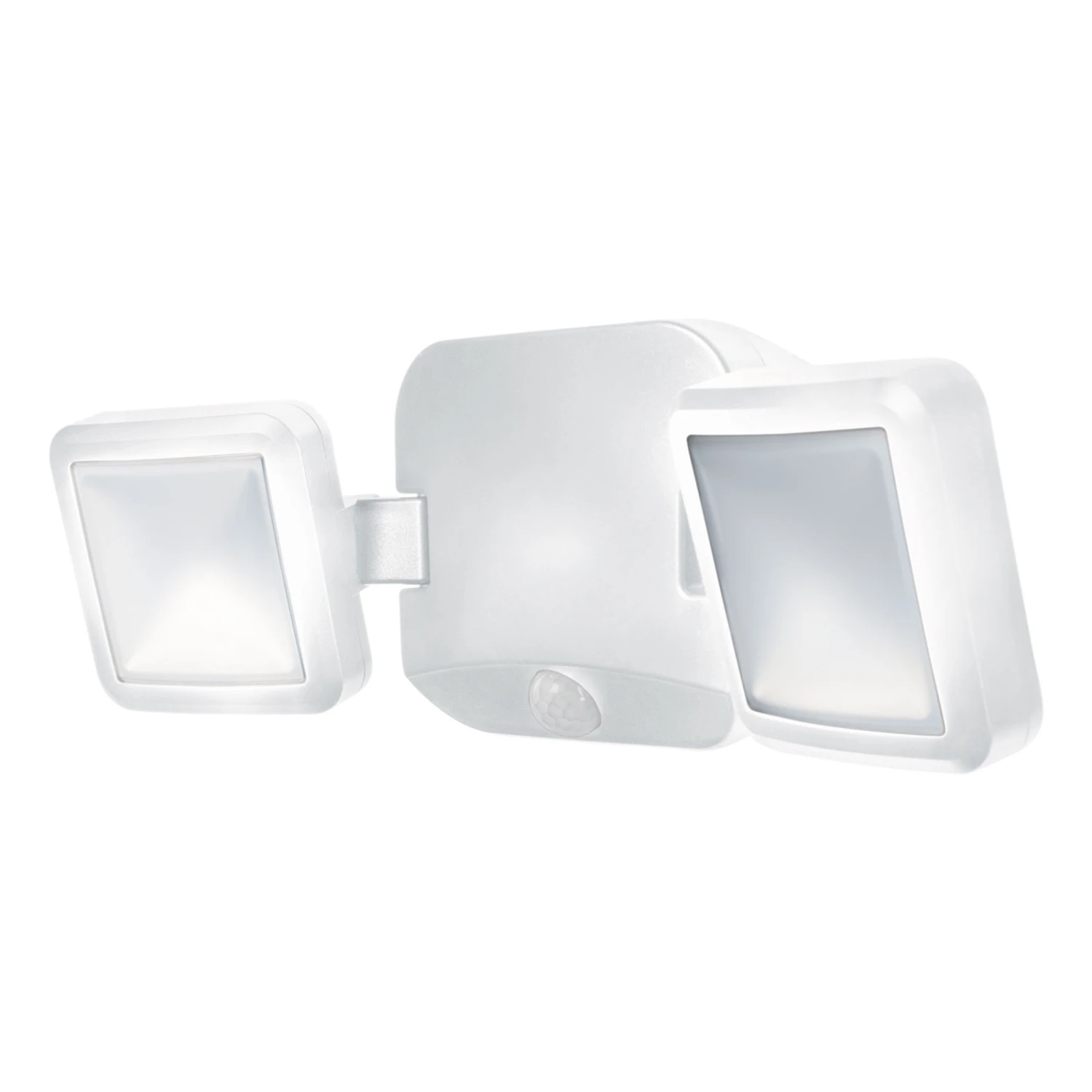 Die Außenwandlampe Battery LED Spotlight hat an beiden Seiten jeweils ein Leuchtmittel, das nach Belieben in seiner Strahlrichtung variiert werden kann. Die Außenwandleuchte besticht durch ihren klaren, weißen Farbton und reagiert durch integrierte Bewegungssensoren auf jede Bewegung.