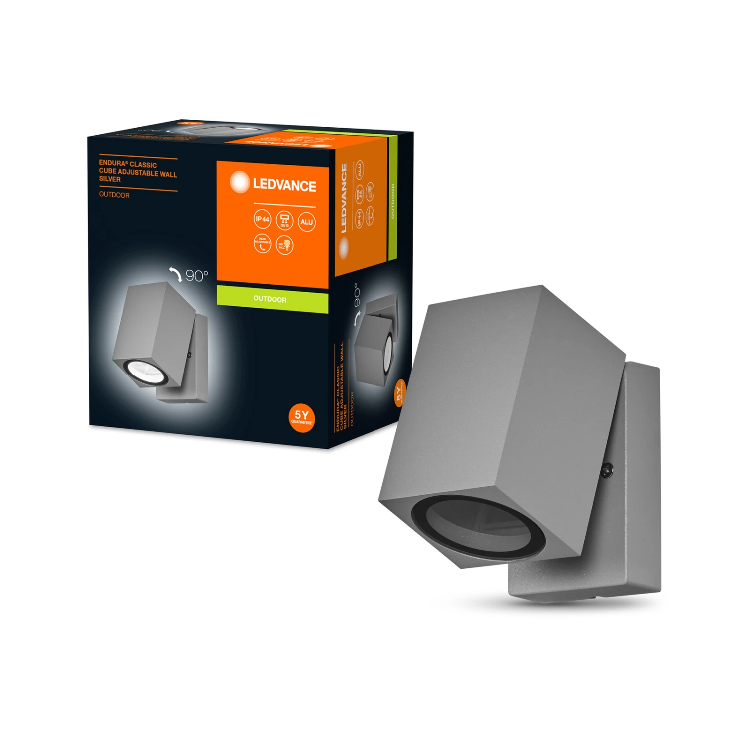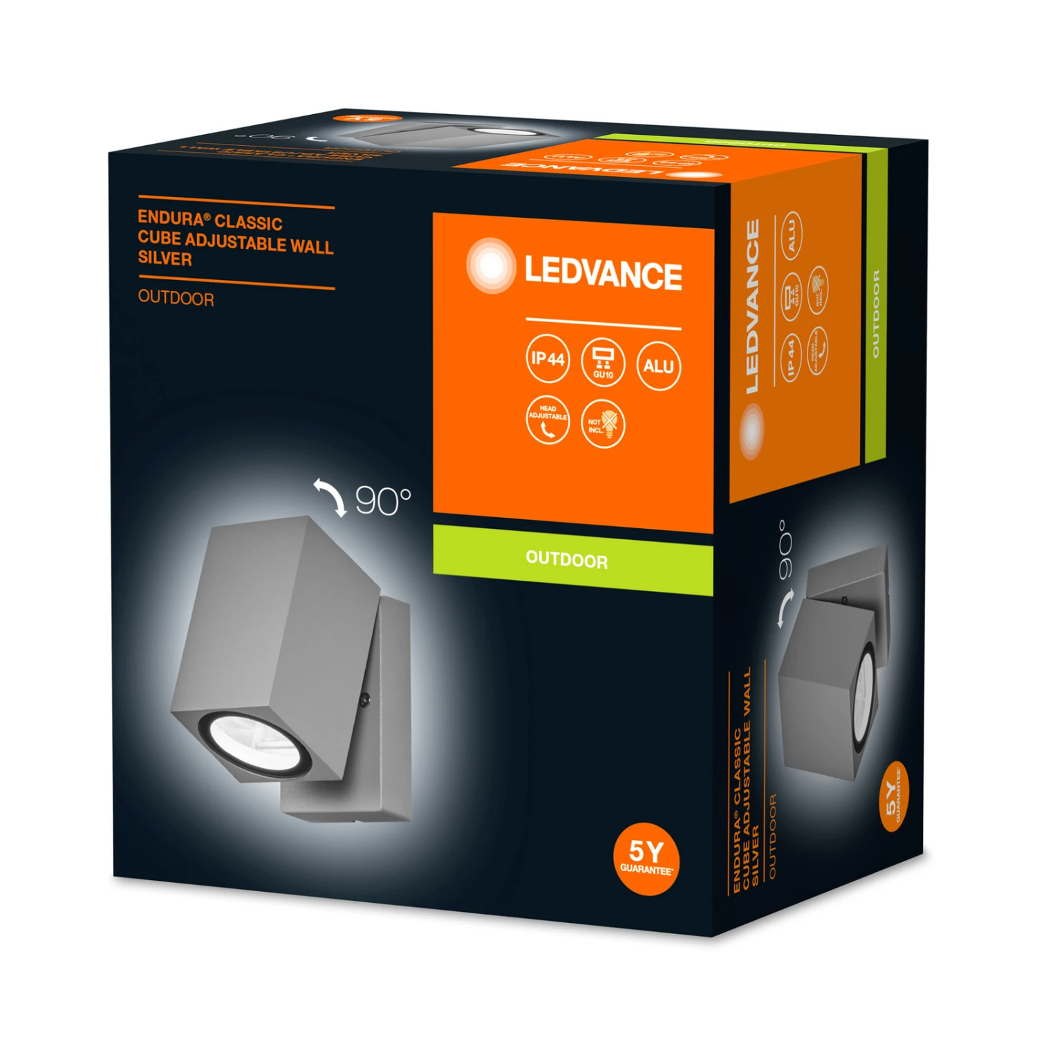 Die moderne Wandleuchte Endura Classic Cube ist aus Aluminium gearbeitet und in schlichtem Schwarz gehalten. Vor der Wandbefestigung ist die quaderförmige Leuchteinheit angebracht, welche nach vorn geschwenkt werden kann, sodass der Lichtschein der unten einzusetzenden GU10-Lampe nicht nur nach unten, sondern auch bis zu 90° horizontal ausgerichtet werden kann. Je nach Abstrahlwinkel des gewählten GU10-Leuchtmittels lässt sich mit der Außenwandleuchte ein gezielter Spot oder eine großflächige Ausleuchtung erzielen.