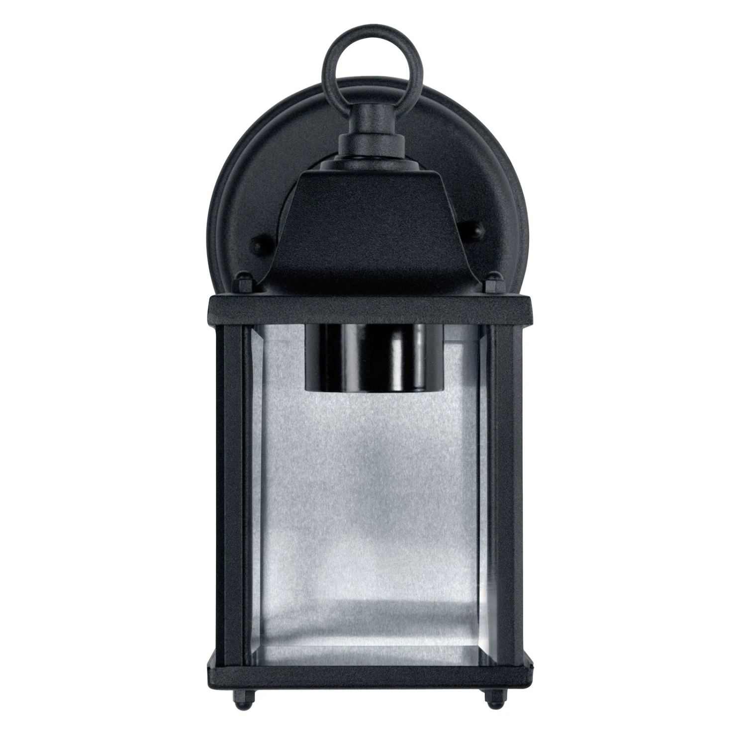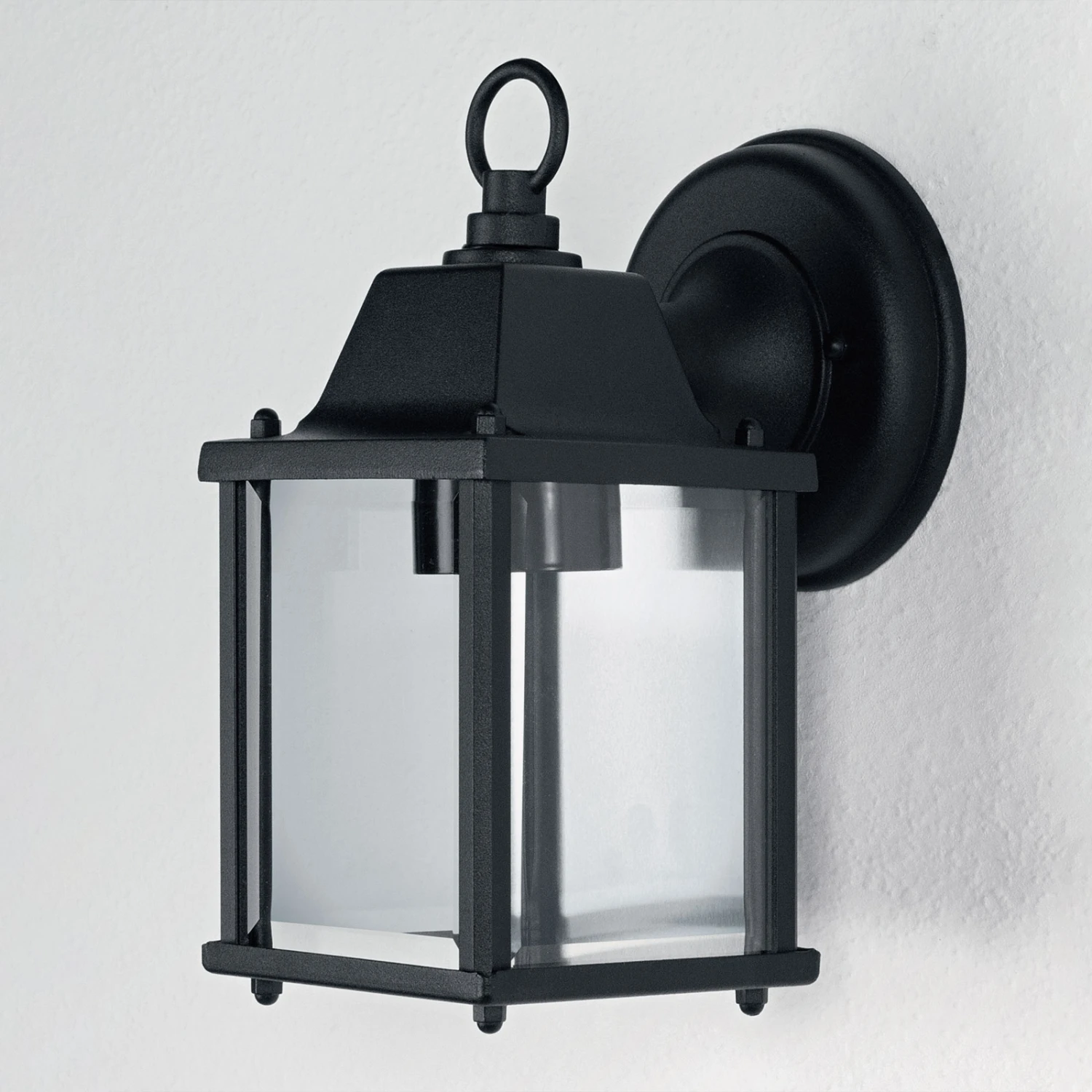 Das schwarze Aluminiumgehäuse im klassischen Laternen-Look mit Klarglasdiffusor gibt den Blick auf den E27-Sockel im Inneren frei, der von oben herabhängt. Der Sockel eignet sich ideal, um hochmoderne Filament-Lampen oder smarte Leuchtmittel einzusetzen (siehe Zubehör).