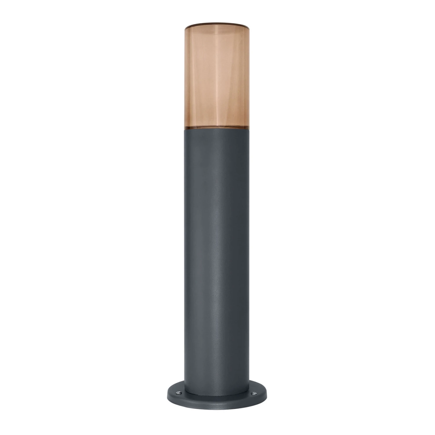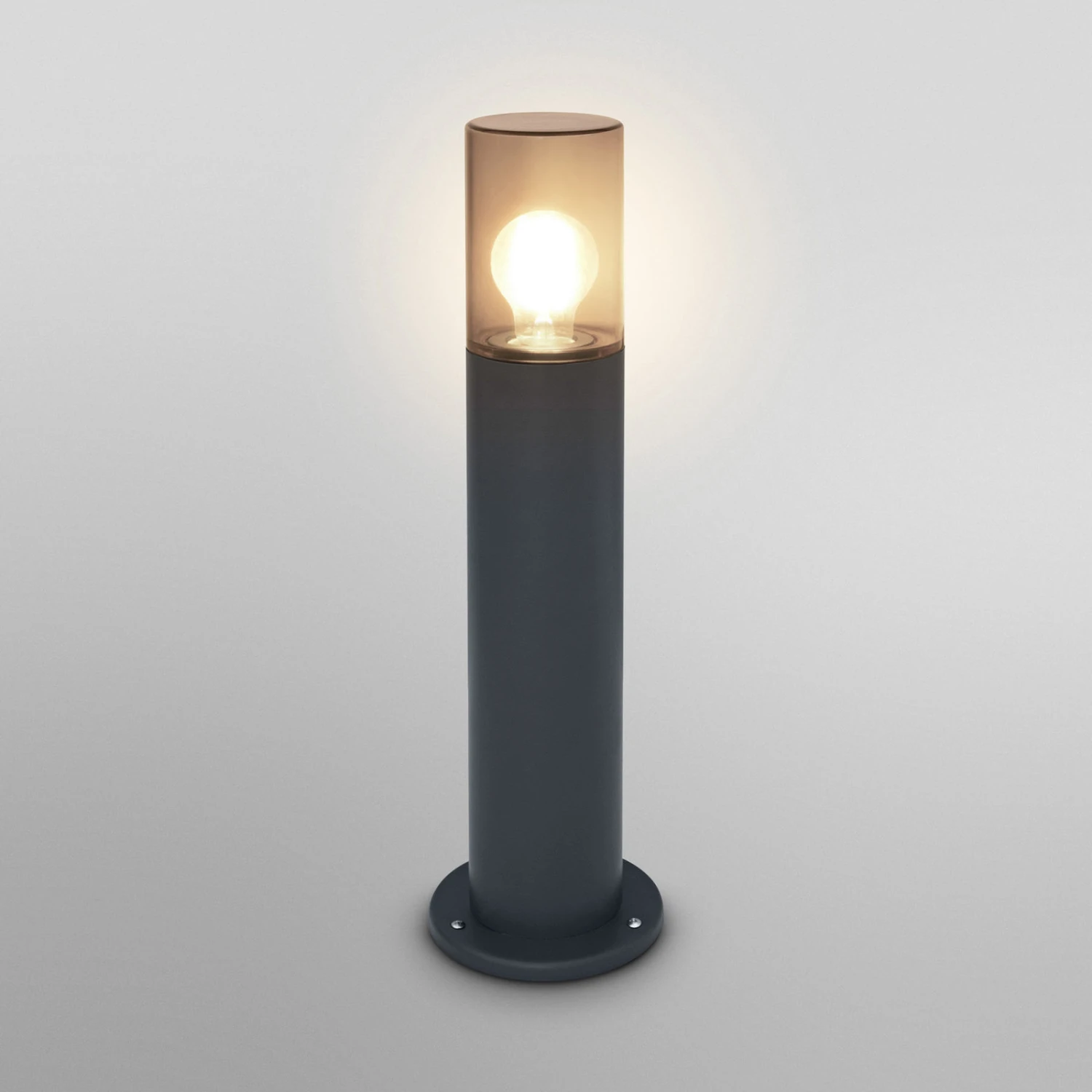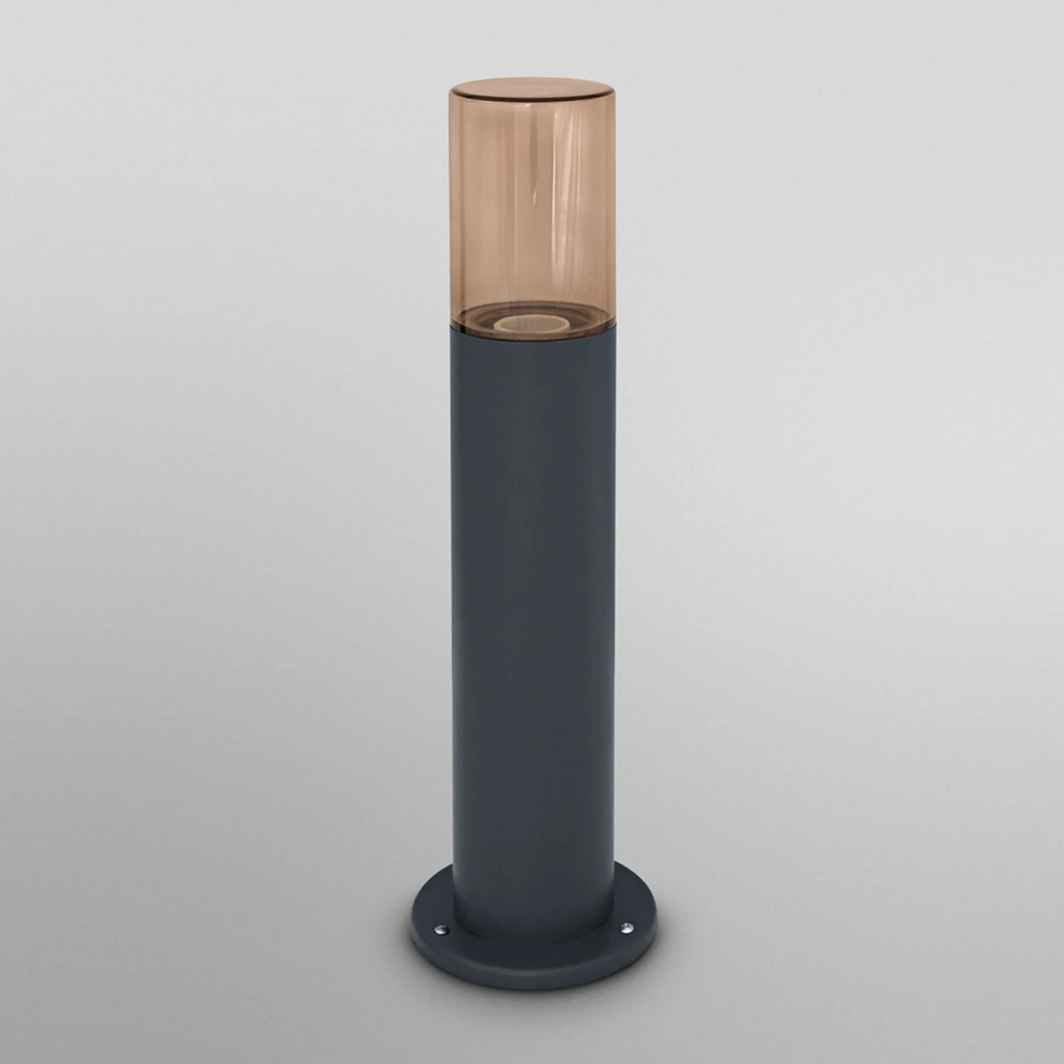 Sockelleuchte Endura Classic Pipe aus Edelstahl in dunklem Grau mit getöntem Glayzylinder