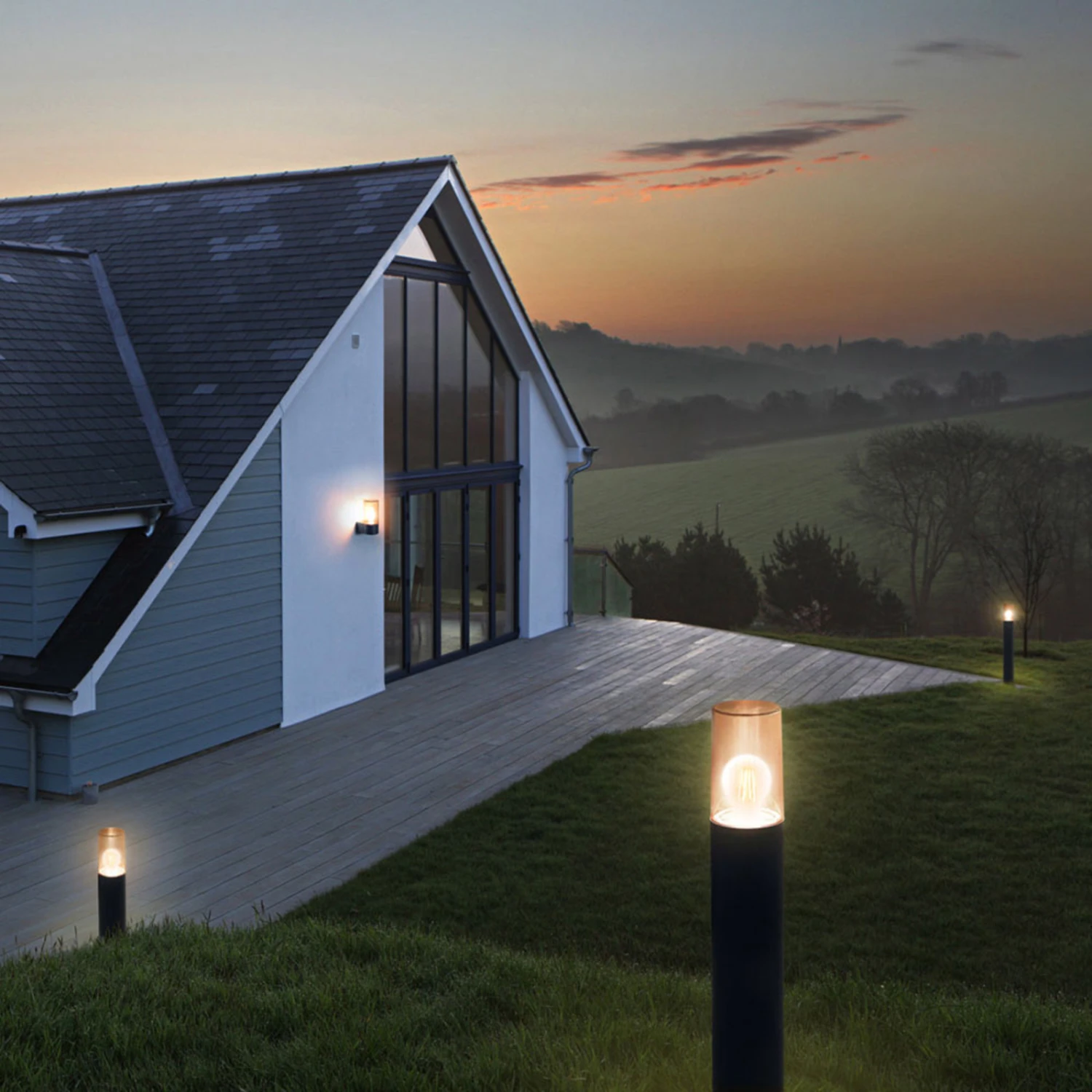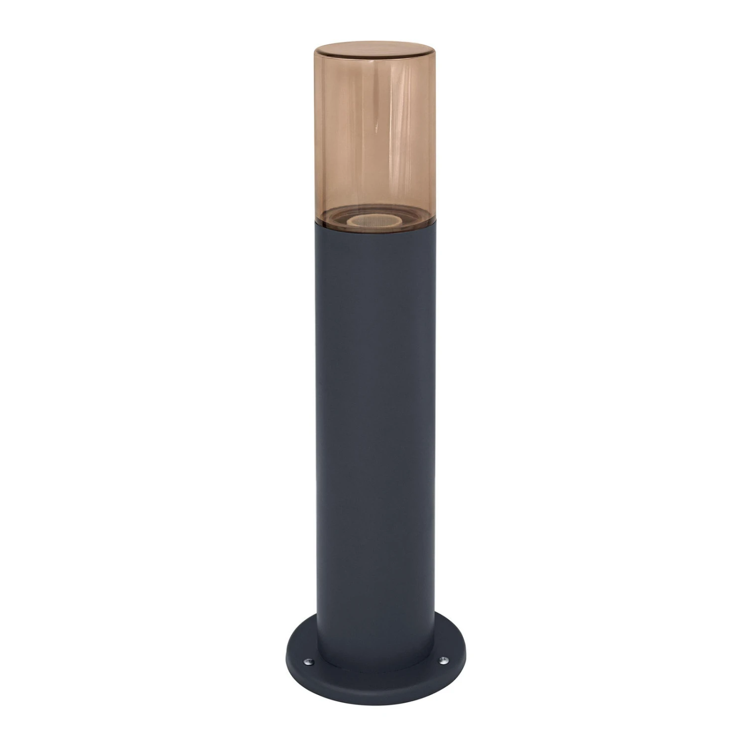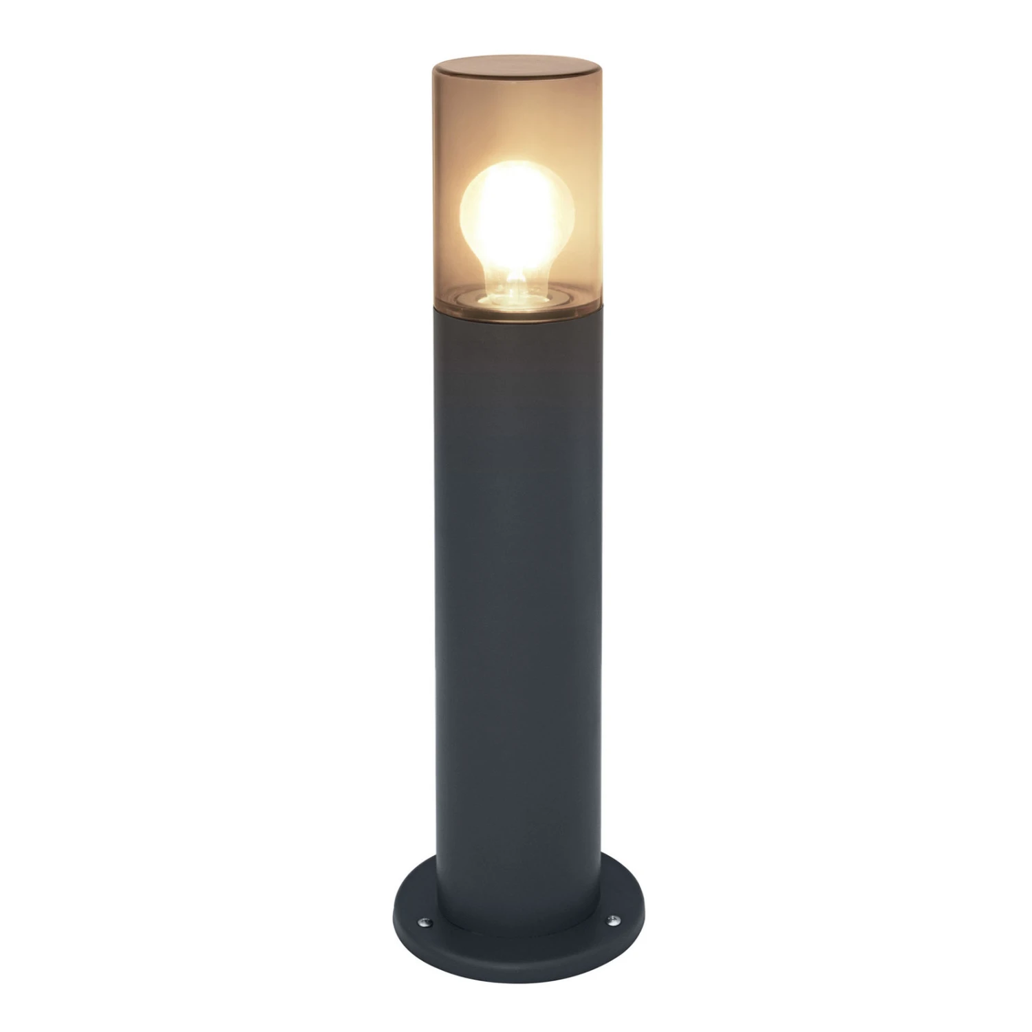Sockelleuchte Endura Classic Pipe aus Edelstahl in dunklem Grau mit getöntem Glayzylinder