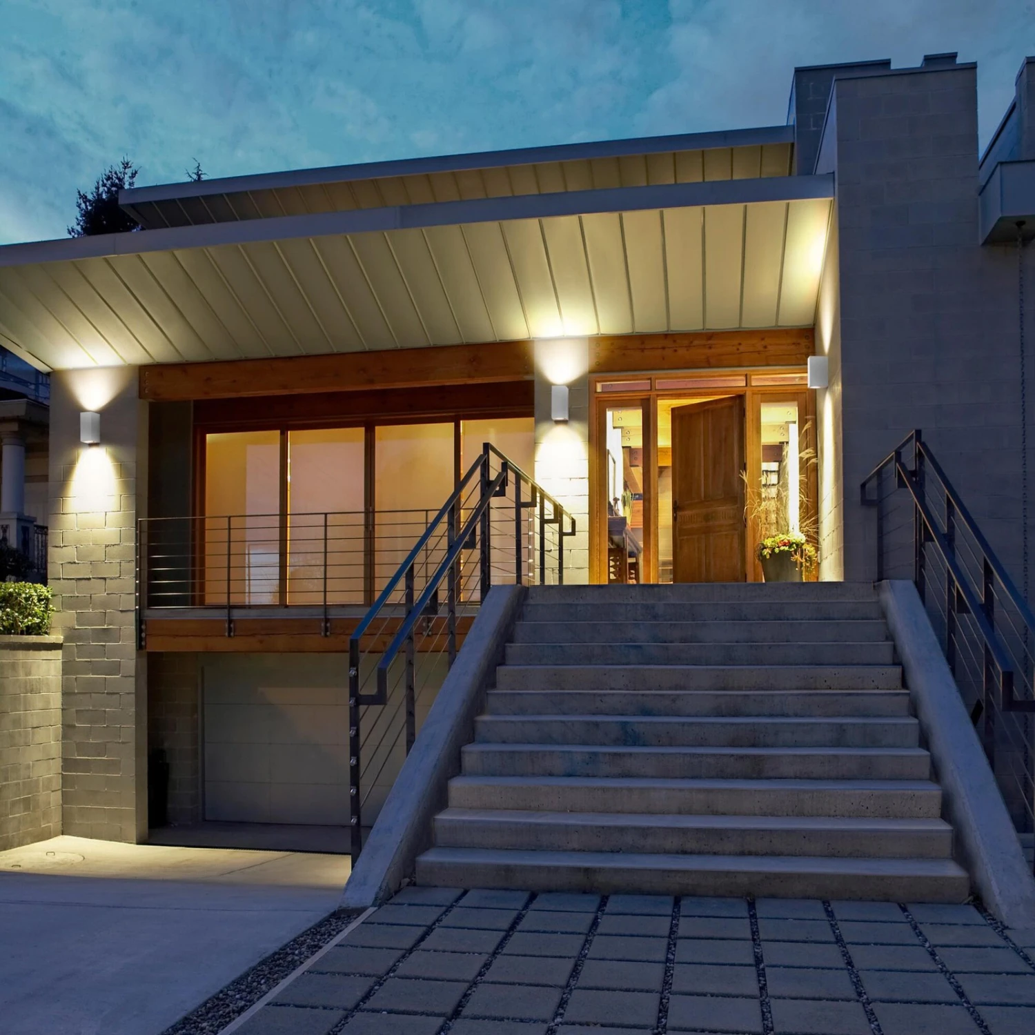 Einen nach oben gerichteten Lichtakzent an der Fassade und zugleich eine funktionale, nach unten gerichtete Ausleuchtung eines Eingangsbereichs oder Fußwegs ermöglicht die Außenwandlampe Endura Classic Square. Ihr quaderförmiger Korpus aus Aluminium in einfarbigem Finish beherbergt je eine GU10-Fassung an Ober- und Unterseite zur Bestückung mit dem bevorzugten Leuchtmittel.