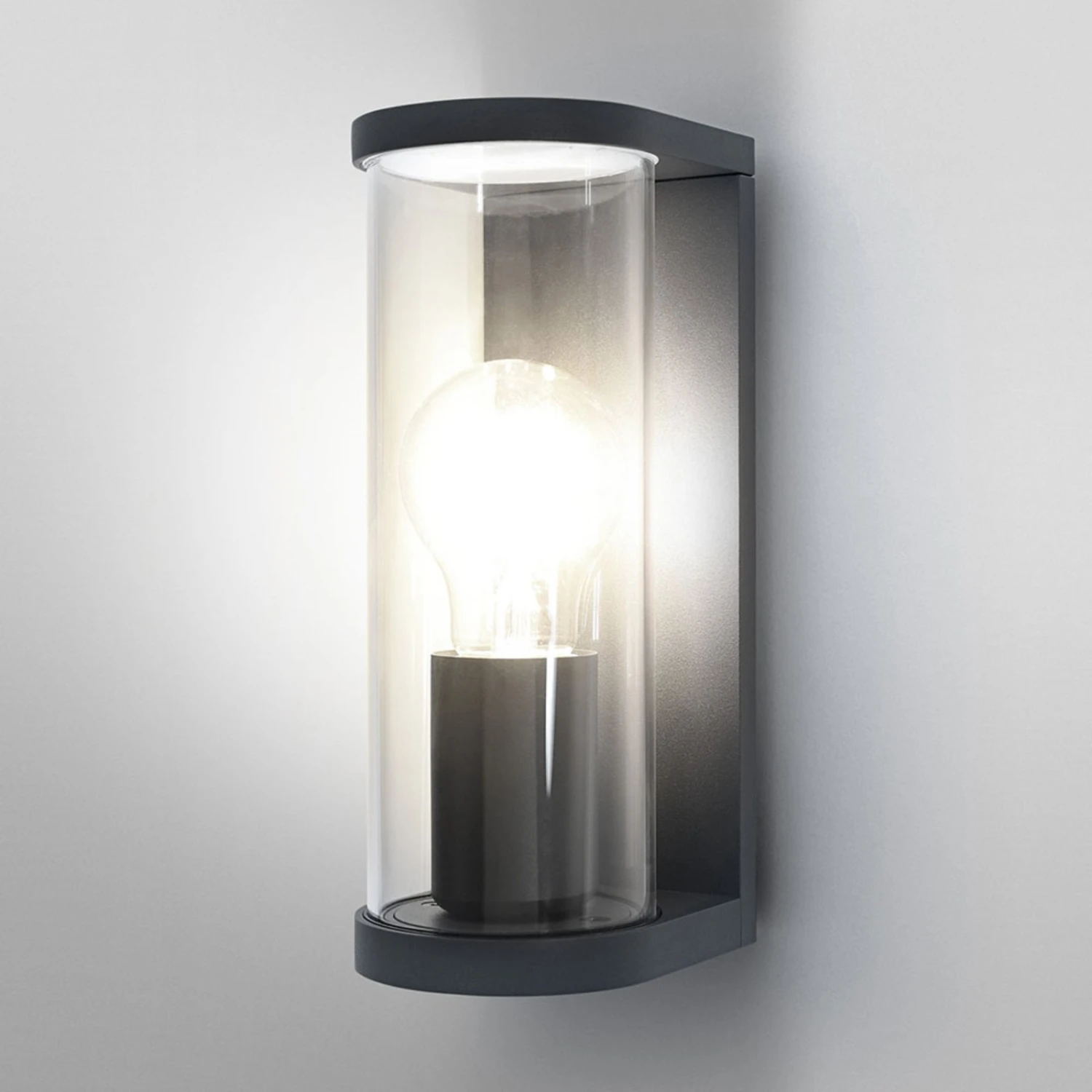 Dunkelgraue Außenwandleuchte Endura Classic Tubular mit klarem Glaszylinder