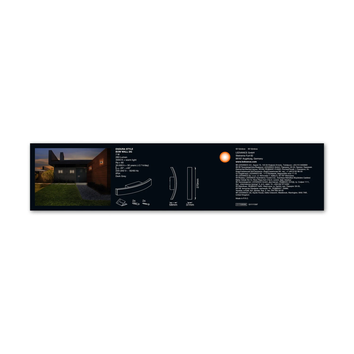 Mit der LED-Außenwandleuchte Endura Style Bow können hervorragend Fassaden angestrahlt, Eingangsbereiche erhellt oder Balkone und Terrassen beleuchtet werden. Das dunkelgraue Gehäuse aus Aluminium wirkt mit seiner leichten Bogenform sehr mondän und elegant. Ausgestattet mit warmweißen LEDs ist die Endura Style Bow gerade für Gebäude im modernen Stil eine passende Lichtquelle für den Außenbereich. Das Äußere der LED-Leuchte ist zudem sehr robust verarbeitet, so dass weder Faustschläge noch Hammerschläge mit einem Gewicht von bis zu 500 Gramm die Leuchte beschädigen können. Zudem hält die Außenwandleuchte auch Umgebungstemperaturen zwischen -20° und 40° C mühelos stand.