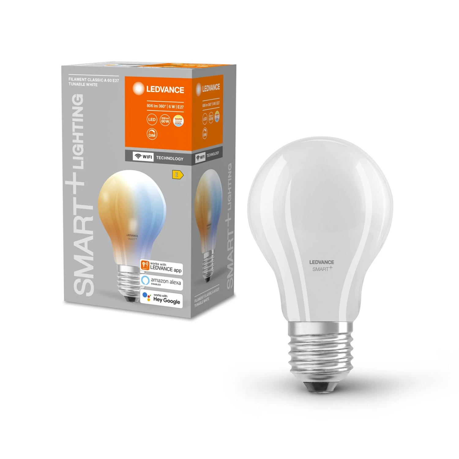 LEDVANCE SMART+ WiFi E27 LED-Lampe A60 mit 6 W, Tunable White, zur Steuerung über WLAN