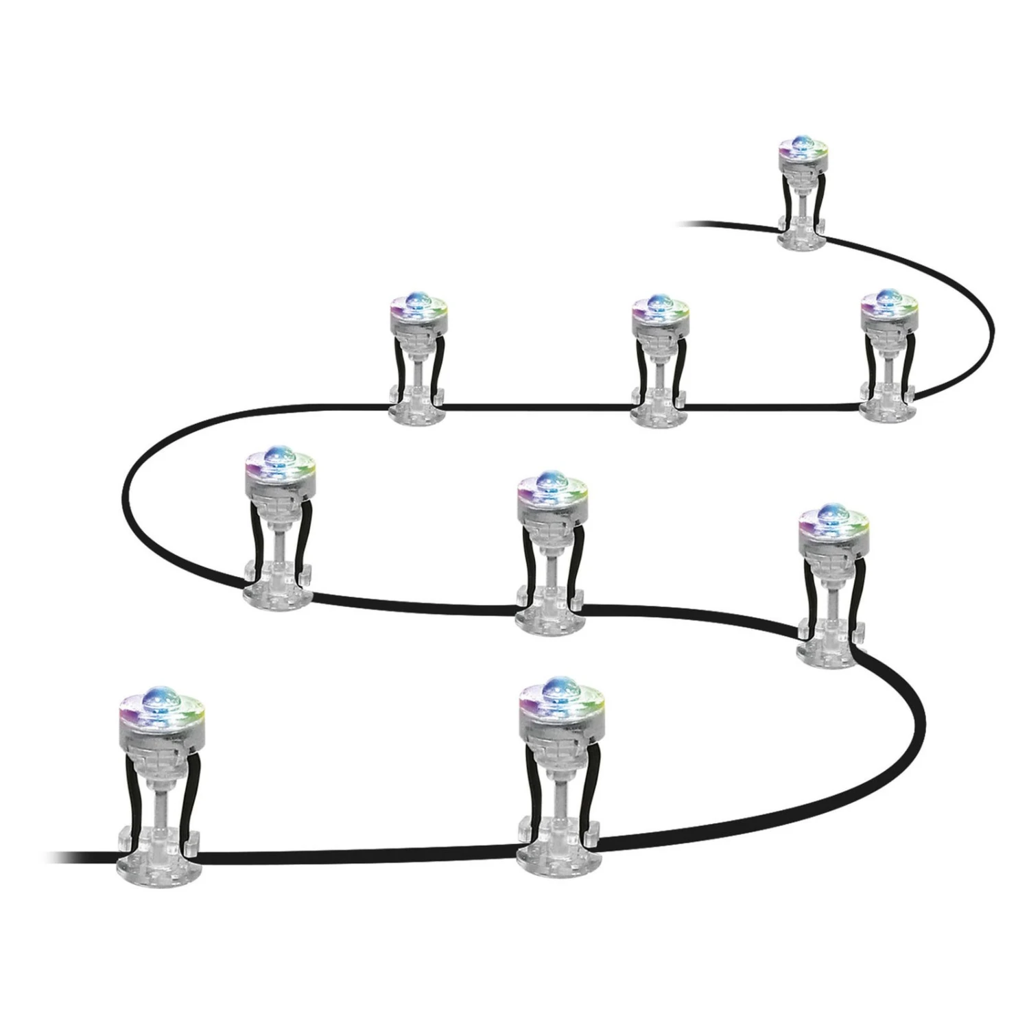 – Lieferumfang: neun Leuchten, ein 230 V zu 5 V IP44-Steckertrafo, eine Controllerbox, Verkabelung