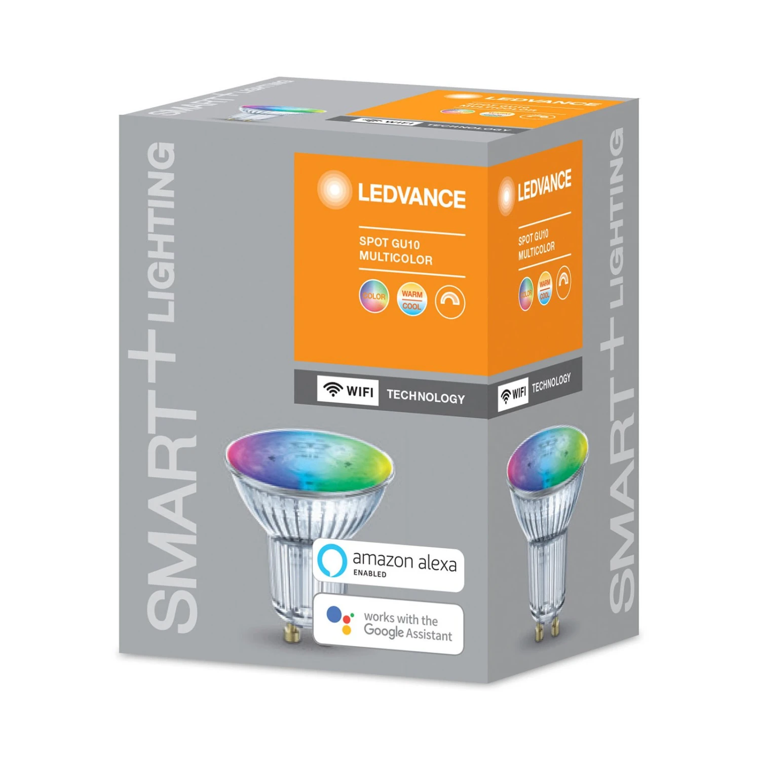 Diese GU10 LED-Lampe überzeugt mit vielseitigen Lichtoptionen und moderner Steuerbarkeit. Letztere gelingt via App oder Sprachbefehl. Zur Herstellung der Verbindung wird kein Gateway oder Bridge benötigt, da das Leuchtmittel dank SMART+ WiFi-Technologie über das WLAN kommuniziert.