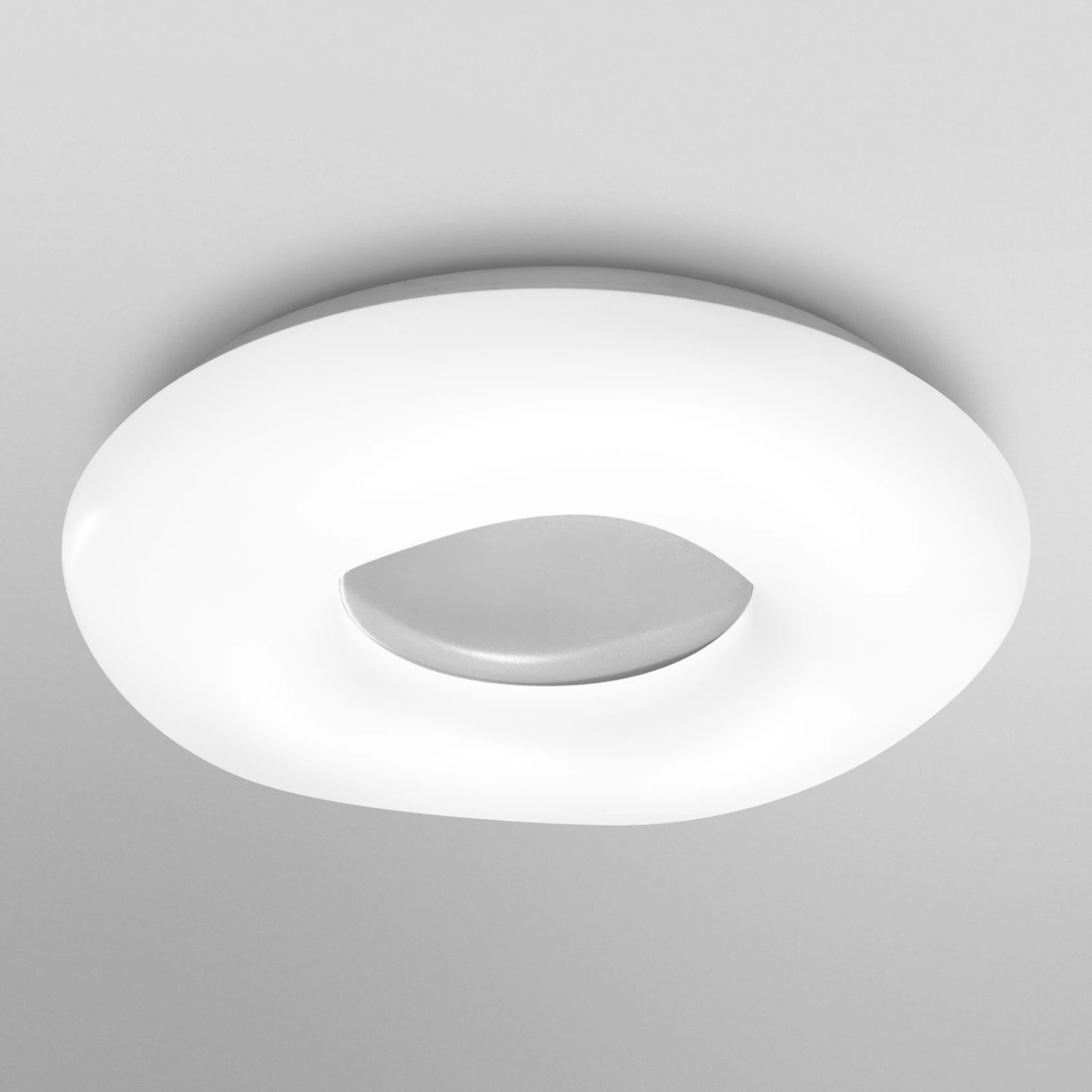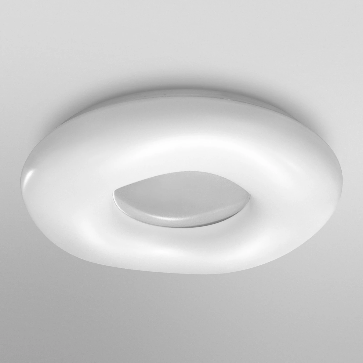 Ein voluminöser, schlauchartiger Ring aus weißem PMMA-Kunststoff bildet den Schirm der LED-Deckenleuchte Orbis Cromo. Die innen liegenden LEDs sind nicht nur stufenlos dimmbar, sondern auch in der Farbtemperatur regelbar, was per App oder Sprachbefehl erfolgt. Hierfür ist kein Gateway/Bridge erforderlich, da Orbis Cromo mit LEDVANCE SMART+ WiFi-Technologie ausgestattet ist, die eine Koppelung direkt über das WLAN ermöglicht.