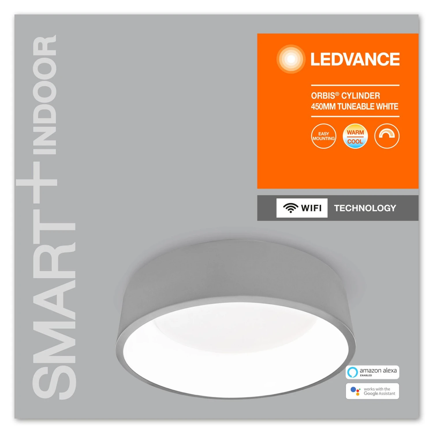 Mit ihrem im zylindrischen Gehäuse rückversetzt liegenden Diffusor aus mattem PMMA-Kunststoff spendet die LED-Deckenleuchte Orbis Cylinder angenehme Bereichsbeleuchtung. Diese kann dank der Dimmbarkeit und einstellbaren Farbtemperatur präzise auf die jeweiligen Bedürfnisse abgestimmt werden. Hierzu ist Orbis Cylinder mit LEDVANCE SMART+ WiFi-Technologie ausgestattet, die eine direkte Verbindung zwischen WLAN und Tablet/Smartphone herstellt und so die Steuerung per App oder Sprachbefehl ermöglicht.