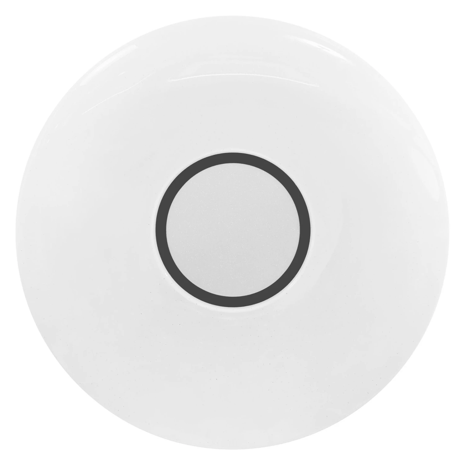 Mit ihrer breiten Ringform, die ein glitzerndes Zentrum umschließt, wirkt die LED-Deckenleuchte dekorativ und modern. Die Formgebung und der weiße PMMA-Kunststoff lassen das Licht gleichmäßig zu allen Seiten strahlen. Die Deckenleuchte kann per App oder Sprachbefehl gedimmt und in der Farbtempertatur geregelt werden. Die Koppelung mit dem Tablet/Smartphone erfolgt dank der LEDVANCE SMART+ WiFi-Technologie direkt über das WLAN – ohne Gateway oder Bridge.
