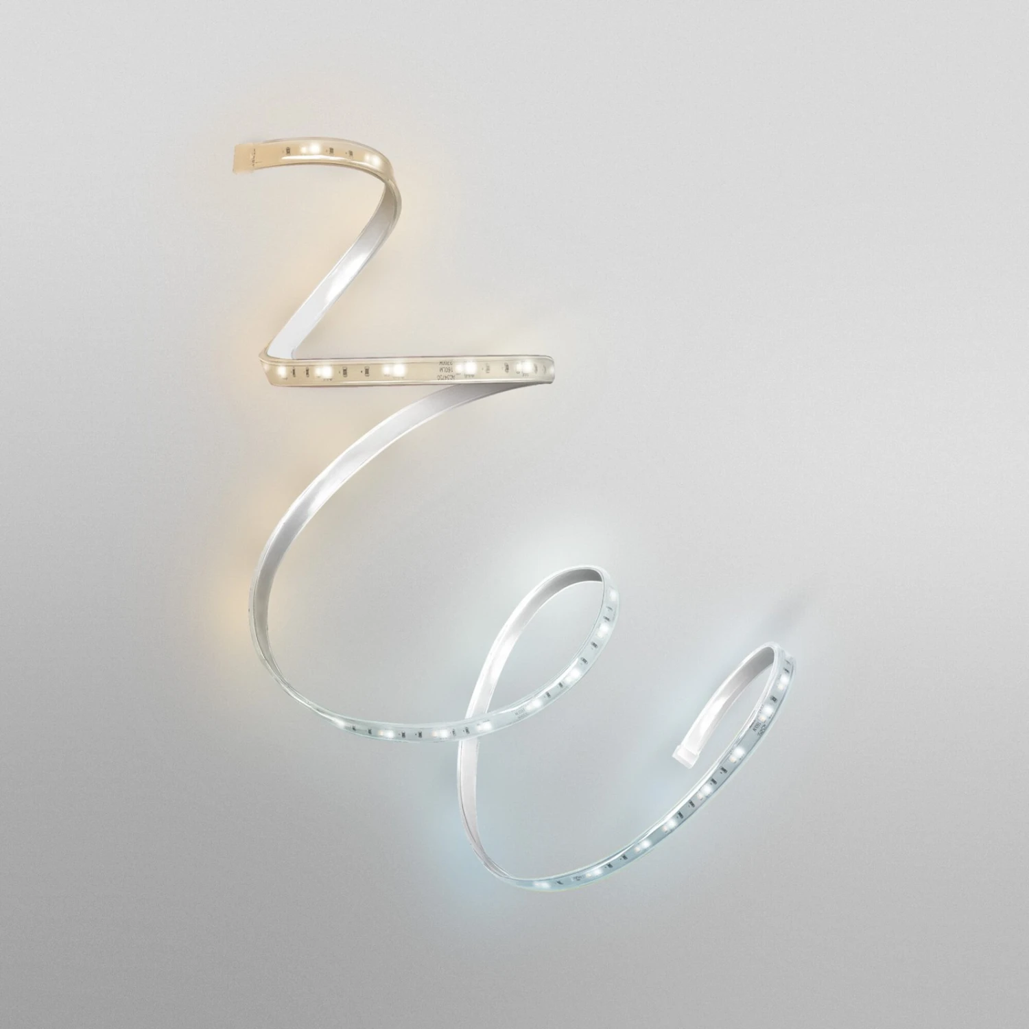Dekorative Beleuchtungsanwendungen im Garten und auf der Terrasse erfüllt der LED-Streifen Outdoor Flex mit vielseitigen Lichtoptionen und fortschrittlicher Steuerbarkeit. Der biegsame Streifen wird ganz unkompliziert über die Steckdose versorgt (Kabel mit Steckernetzteil liegt bei) und ist mit einem Verteiler samt WiFi-Empfänger ausgestattet, der die Koppelung über das WLAN ermöglicht. So kann die Bedienung per App oder Sprachbefehl vorgenommen werden. Das Licht ist dimmbar und lässt sich in bis zu 16 Mio. Farbmöglichkeiten oder warmweißen bis tageslichtweißen Abstufungen regeln.