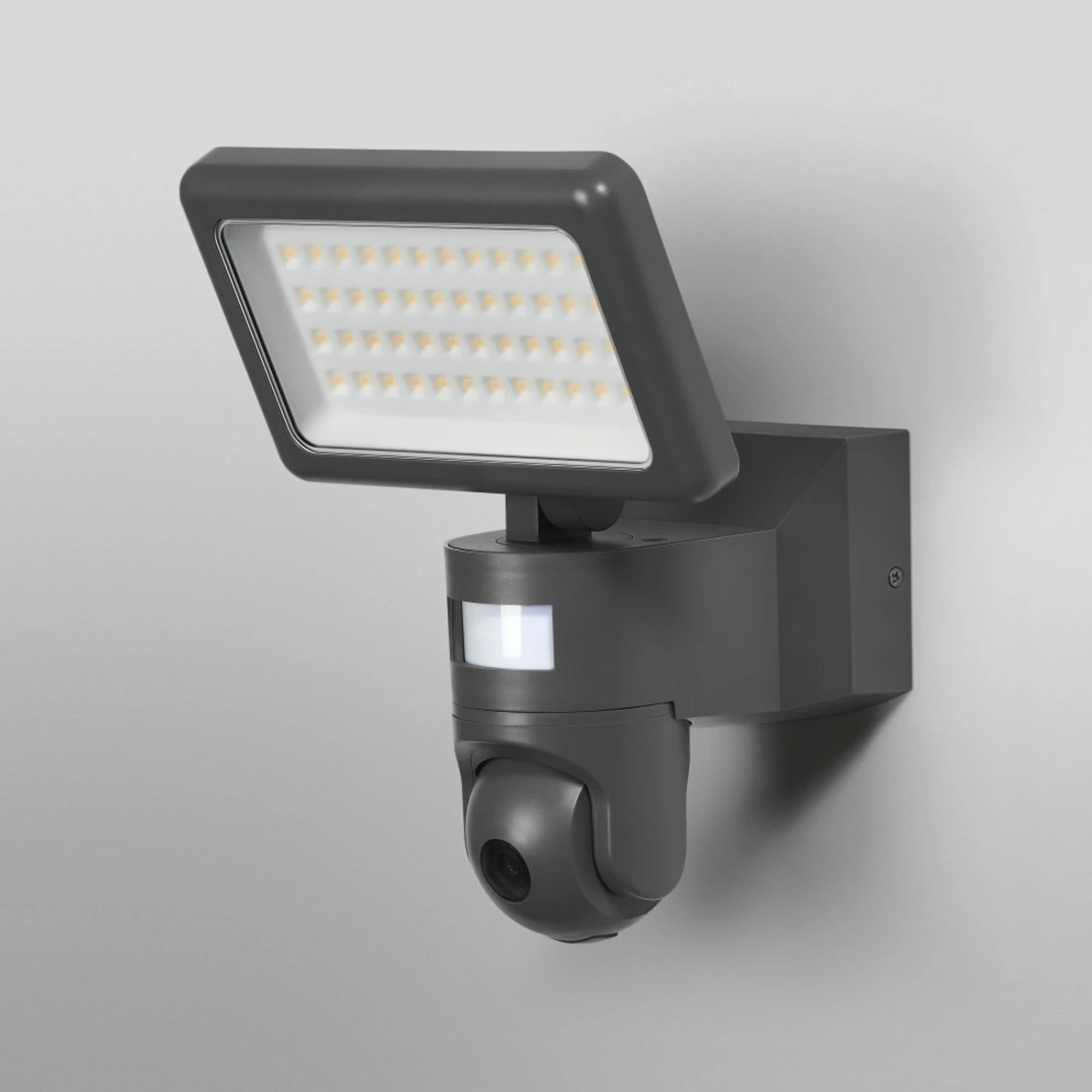 Die LED-Außenwandleuchte Outdoor Flood Camera Control DG lässt sich durch ihre dezente Farbgestaltung problemlos in unterschiedliche Umgebungen integrieren. Sie verfügt über eine großen Scheinwerfer, der gedreht und geneigt werden kann. Die integrierte Kamera und der Bewegungssensor sorgen für die nötige Sicherheit im Eingangsbereich. Die Kamera verfügt über eine HD-Live-Bild-Übertragung, nimmt Sequenzen auf und speichert diese ab. Die zahlreichen Funktionen können auf die individuellen Bedürfnisse angepasst werden.