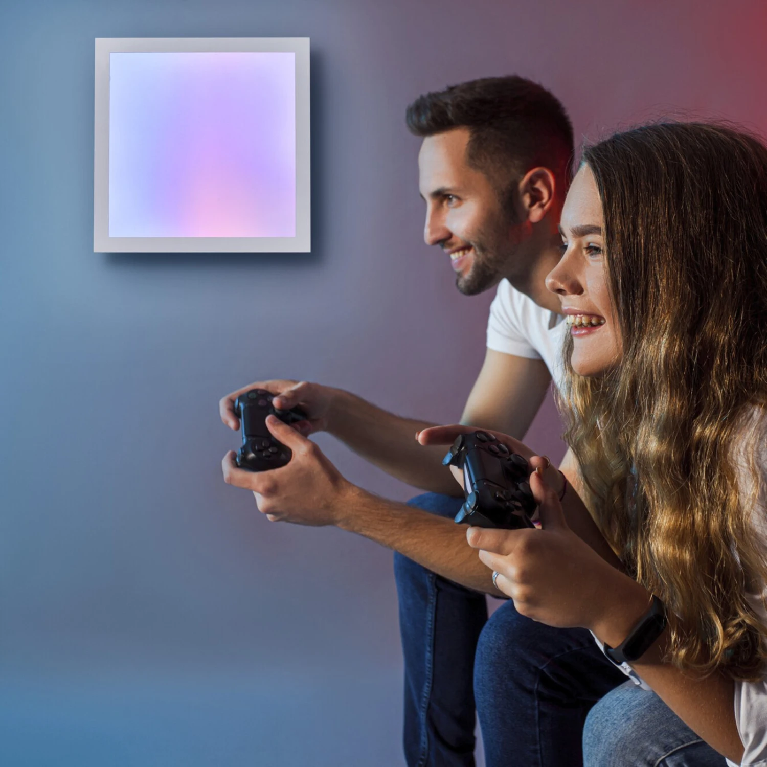 Eckiges LED-Panel Planon Magic zum Deckenanbau, RGBW, per Fernbedienung und smart steuerbar