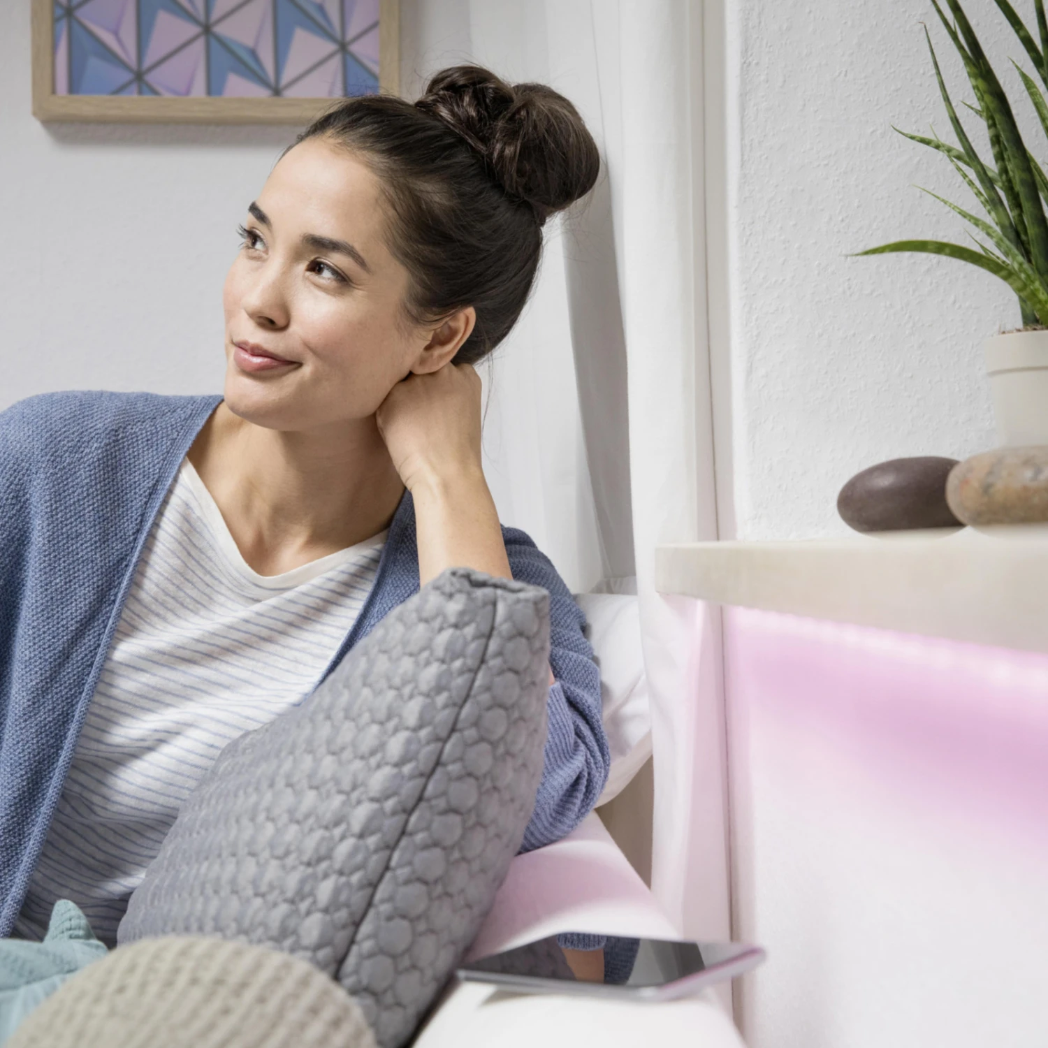 Das LED-Lichtband SMART+ Flex von LEDVANCE besitzt eine RGB-Farbsteuerung. Dadurch sind unzählige Farbvarianten sowie diverse Effekte oder Szenarien über die App programmierbar. Wie wäre es mit einem atemberaubenden Sonnenaufgang? Mit dem LED-Band kein Problem. Neben der Lichtfarbe kann ebenfalls die Farbtemperatur über Tuneable White eingestellt werden. Hierbei kann zwischen einem sehr warmen Weiß (2.000 K) bis hin zu einem kalten Tageslicht (6.500 K) variiert werden. Selbstverständlich ist das LED-Lichtband auch stufenlos dimmbar.