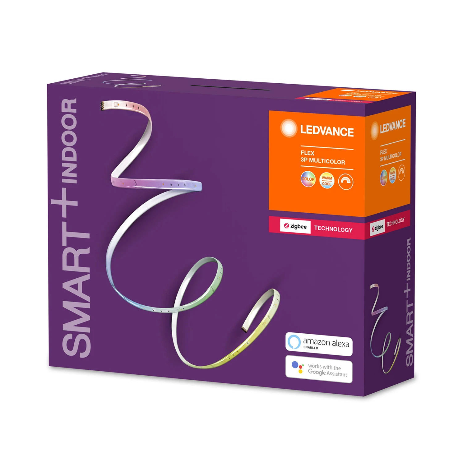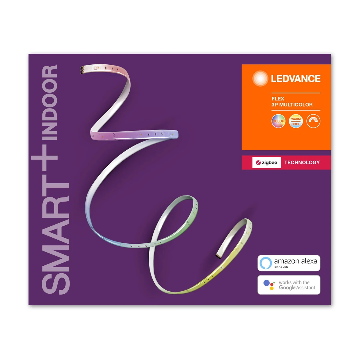 Das selbstklebende LED-Lichtband ist mit der innovativen Zigbee-Technologie ausgestattet und lässt sich problemlos in ein bestehendes und kompatibles Smart-Home-System integrieren. Hierzu wird lediglich ein Gateway benötigt, das nicht im Lieferumfang enthalten ist. Durch die neueste Technologie kann das LED-Lichtband LEDVANCE SMART+ Flex auch mit der eigenen Stimme gesteuert werden: dazu lediglich das Gateway mit Amazon Echo verbinden und das Lichtband über Alexa sprachlich steuern. Zu beachten gilt: Diese Produktvariante ist nur mit Amazon Echo kompatibel, nicht jedoch mit dem Apple HomeKit.